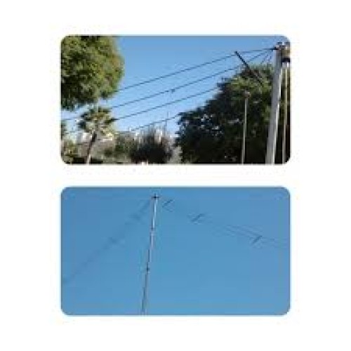 De langste (bovenste) dipool is verstevigd en draagt ​​de dipolen die eronder hangen. Bij de 80m en 40m dipolen heeft de langste band een verlengspoel aan elke kant van de dipool om de totale lengte te verkorten.