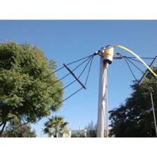 De ophanging is hetzelfde als bij een conventionele dipool, recht (uitgerekt) of schuin naar beneden (omgekeerde V). De antenneventilatordipool moet voor ingebruikname worden gemonteerd en uitgelijnd.